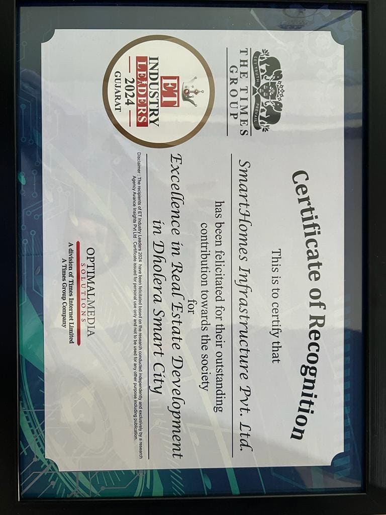 We are thrilled and honoured to receive the "Excellence in Real Estate Development in Dholera Smart City" award at the ET Industry Leaders 2024. This prestigious recognition from The Times Group is a testament to our dedication and hard work in transforming Dholera into a futuristic smart city. Thank you to our team and supporters for making this achievement possible.