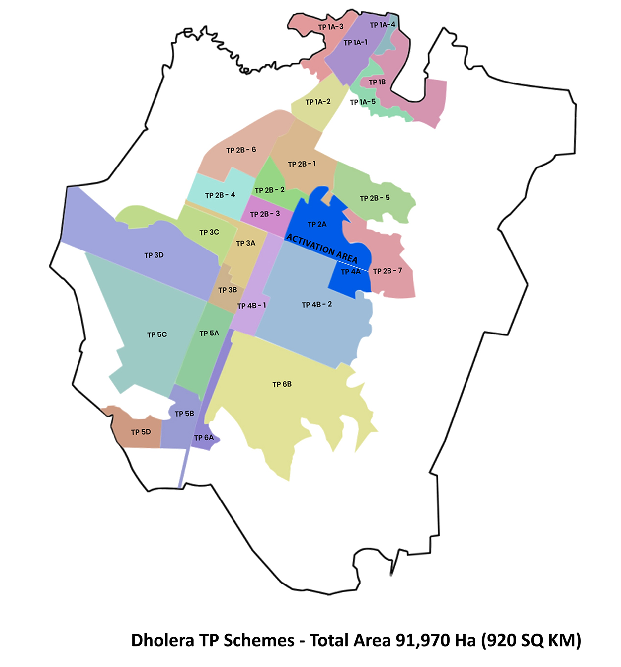 Dholera SIR is being developed in a phased manner, with all six draft Town Planning schemes already notified. The finalization process is underway, covering 422 sq. km. of land earmarked for development out of the total 580 sq. km., while 158 sq. km. has been designated for agriculture.